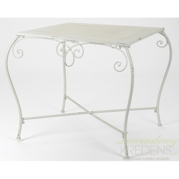 Zgrabny stół prowansalski o prostokątnym blacie i charakterystycznie wygiętych nogach. Polecamy!