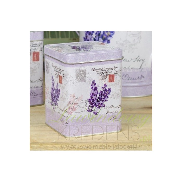 Puszki z lawendą wykonane są z wysokiej jakości metalu. Pojemniki z lawendą mają kwadratowy kształt i szczelną pokrywkę. Metalowe pojemniki wyglądają niczym pocztówka: mają znaczek, pieczątkę i francuskie napisy.