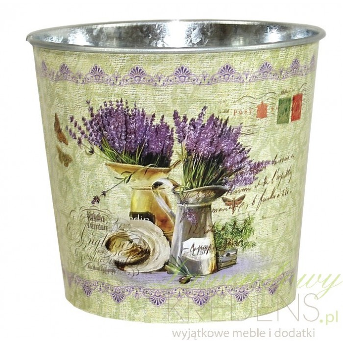 Klasycznie uformowane metalowe osłonki, na których powierzchni ukazane są prowansalskie motywy z kwitnącą lawendą na czele. Dodatkowo koloru wszystkiemu nadają ozdobne wazony i zioła, a także widoczne w tle motyle, znaczki, stemple i napisy w piśmie odręcznym. Ta prosta, ale piękna ozdoba pozostawi pozytywną energię w Twoim wnętrzu, a także nada nowy akcent Twoim roślinom!