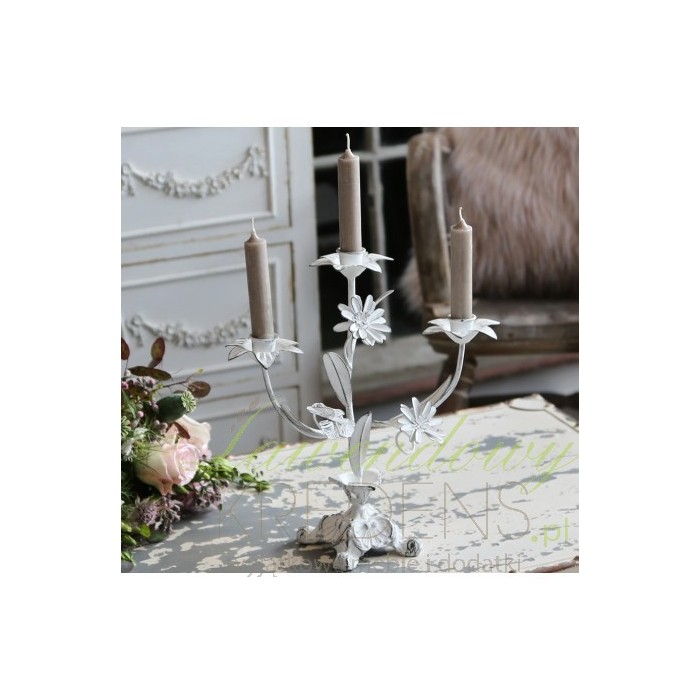 Fantastyczny świecznik w stylu prowansalskim na trzy świece, ozdobiony motywami wspaniałych kwiatów!