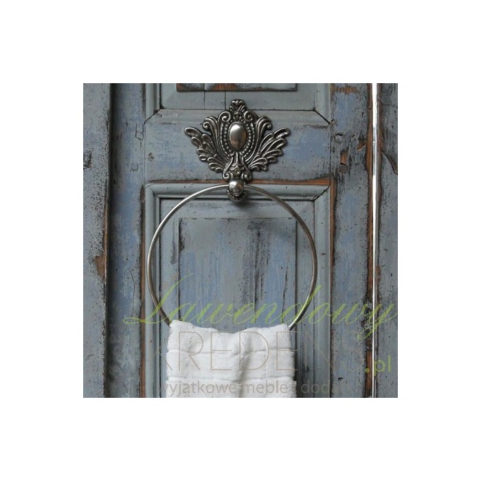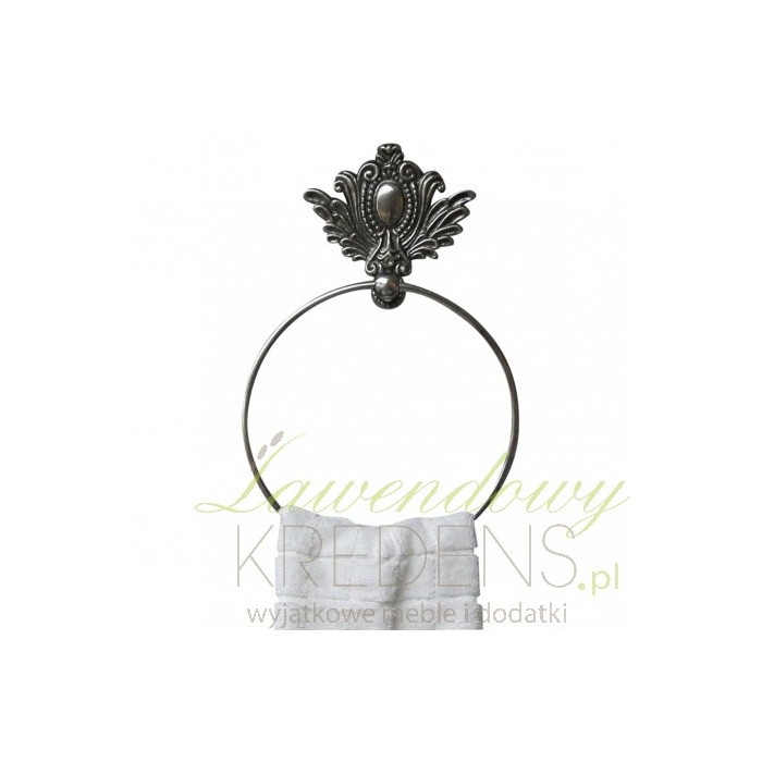 Trwały, metalowy uchwyt na ręcznik to specjalna obręcz na obrotowym mocowaniu, dzięki czemu łatwo możemy odchylić wieszak w celu umieszczenia ręcznika. Obręcz zamocowana jest do dekoracyjnej podstawy, która kształtem i wzorem może przypominać broszkę.