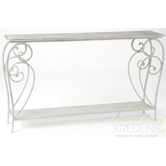 Wyjątkowo ozdobna prowansalska konsola z prostymi, drewnianymi blatami. Cudo jakiego nie widzieliście!
