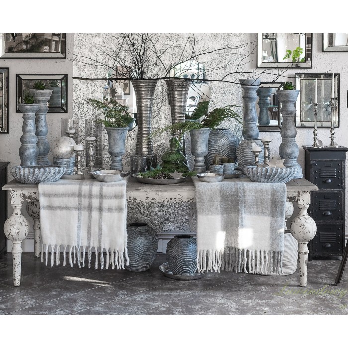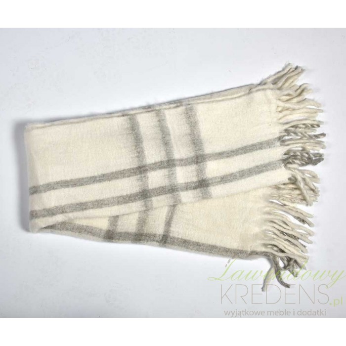Biały koc Belldeco z szarymi, pionowymi i poziomymi pasami, które przecinając się tworzą większe i mniejsze kraty. Takie połączenie kolorystyczne sprawia, że koce Belldeco pozytywnie wpływają na aurę otoczenia. Dodatkowo gęste frędzle na końcach koca genialnie podreślają jego miękkość!