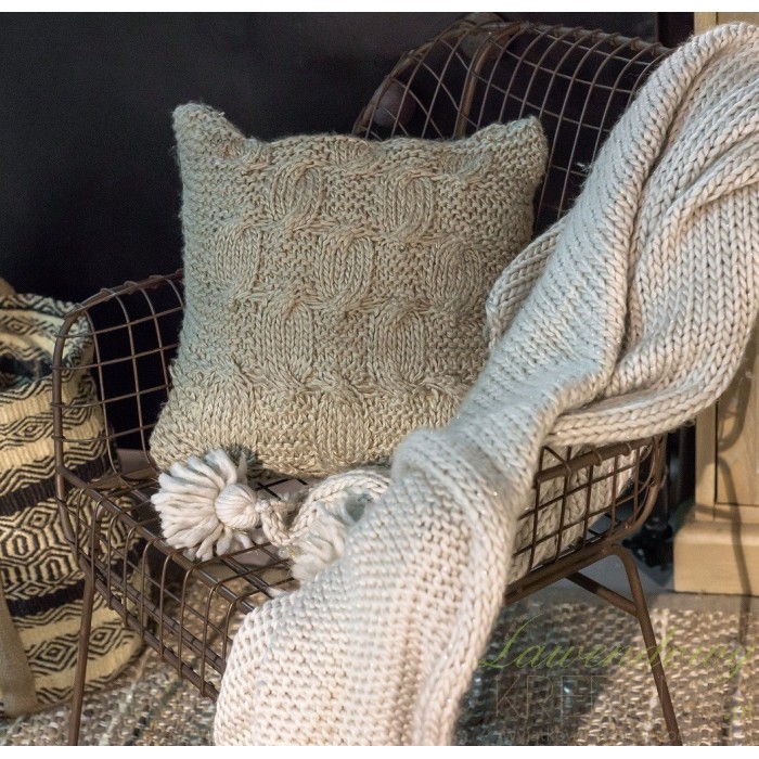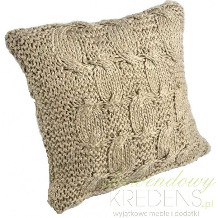 Blisko półmetrowej długości i wysokości poduszka Belldeco z pięknym wzorem na przedniej stronie. Wzór ten o naprzemiennym ciągu sklada się z nachodzących na siebie dwóch splotów włóczki o wypuklym charakterze. Daje to ogólne wrażenie wielowymiarowości!