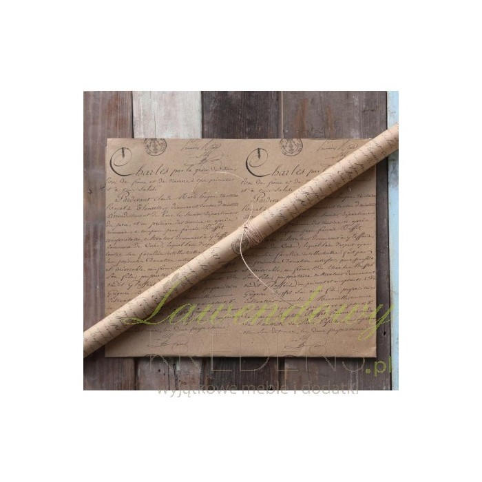 Papier do pakowania firmy Chic Antique ma prostokątny kształt. Stanowi niepowtarzalną i jedyną w swoim rodzaju dekorację. Przypomina francuski list z wyjątkową pieczątką i niezwykle starannymi literami.