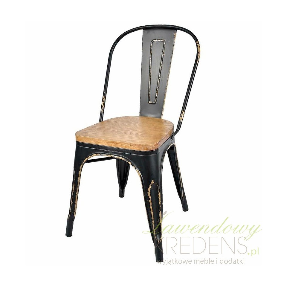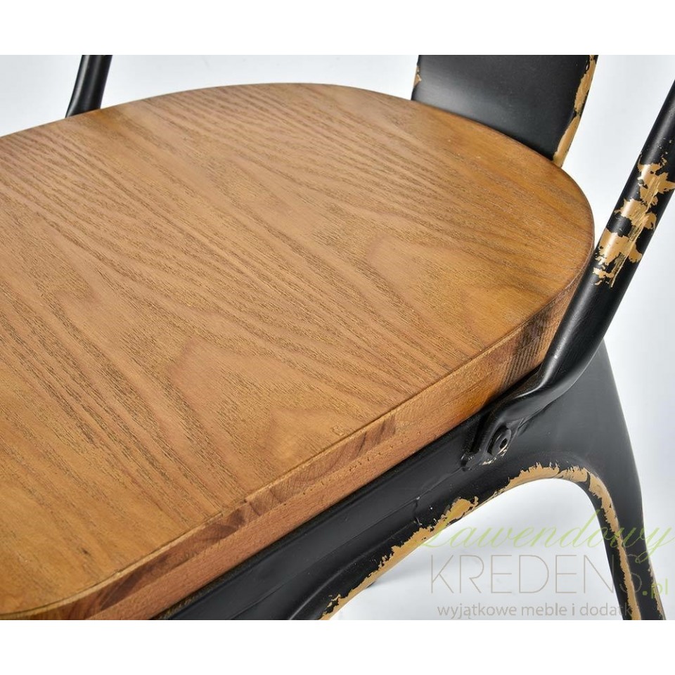 Metalowe krzesło Belldeco z drewnianym siedziskiem, o charakterystycznie dla stylu industrialnego postarzaną powierzchnią. Krzesło to posiada nadzwyczaj stabilną konstrukcję z wysokim oparcie, które daje poczucie wygody i daje odpocząć naszym plecom.
