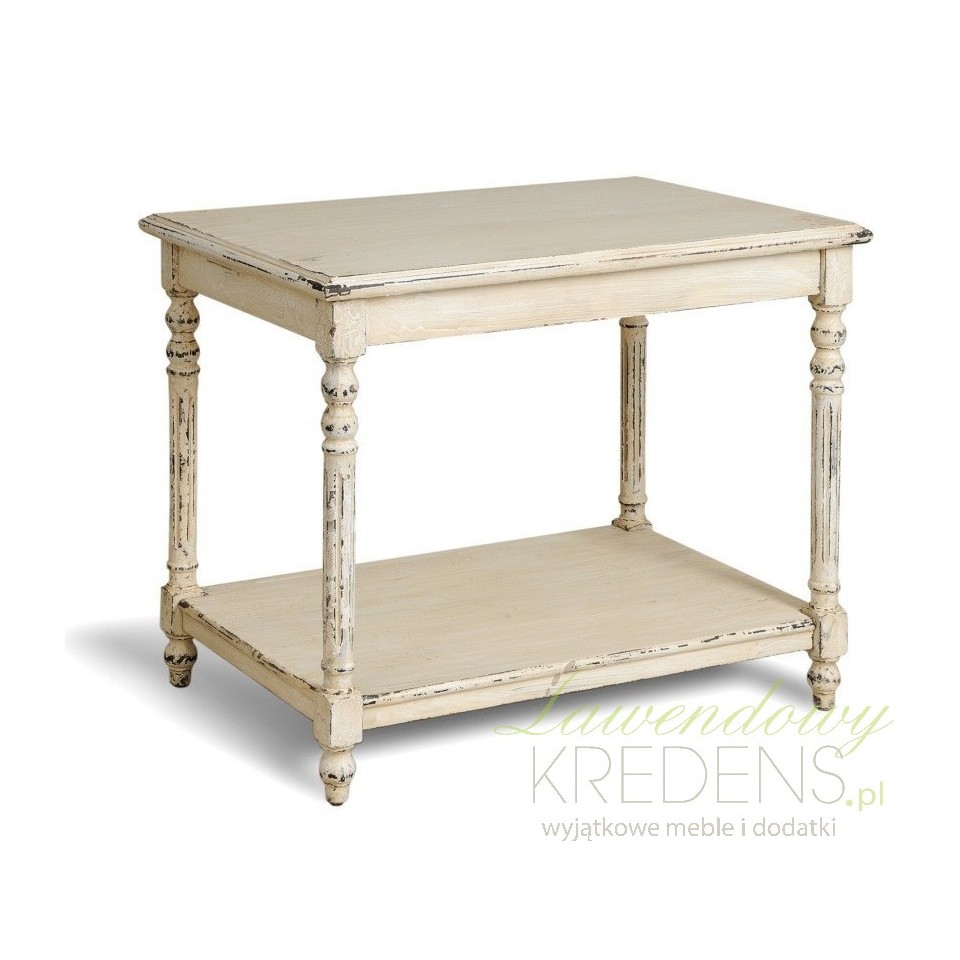 Stół krótki z półką Luna polecamy wszystkim osobom lubiącym styl prowansalski oraz nieprzeciętne, postarzane meble Belldeco.