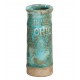 Nieduży, błękitny wazonik Belldeco z serii Azzurro Old z wypukłym napisem SHABBY CHIC.