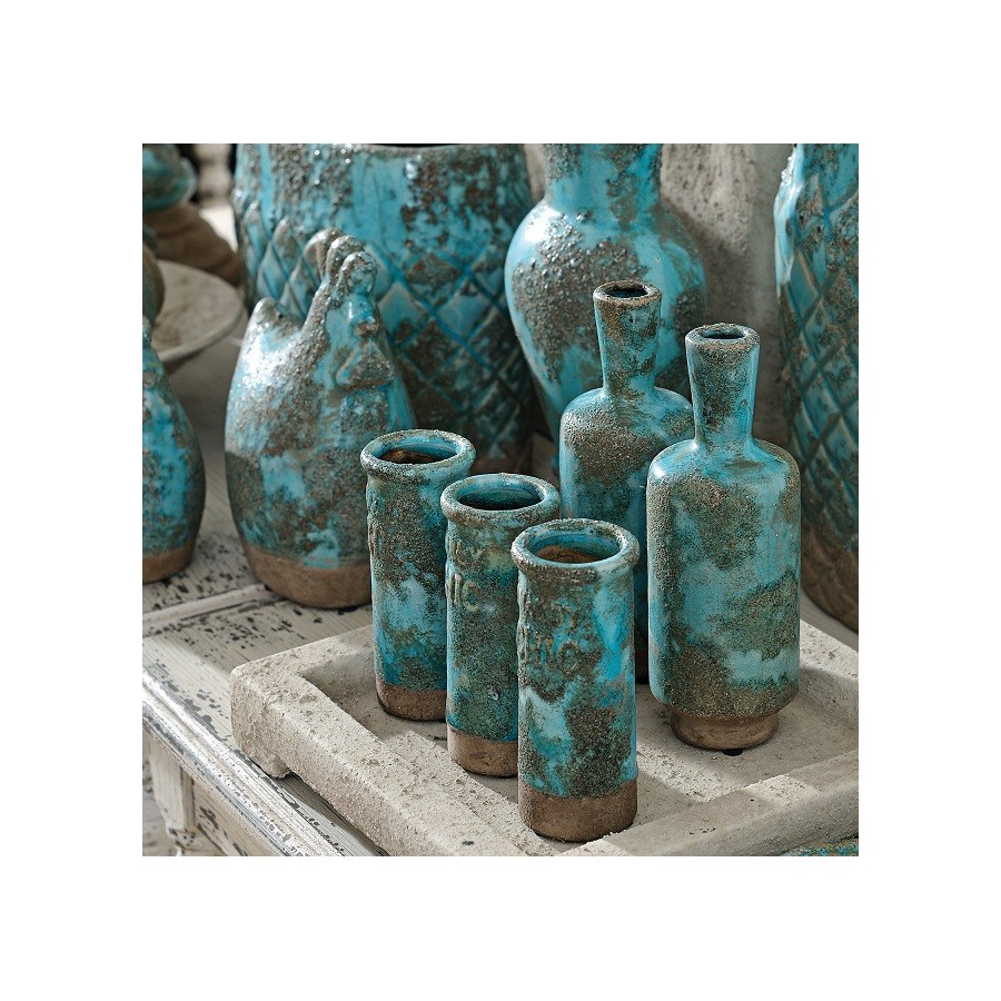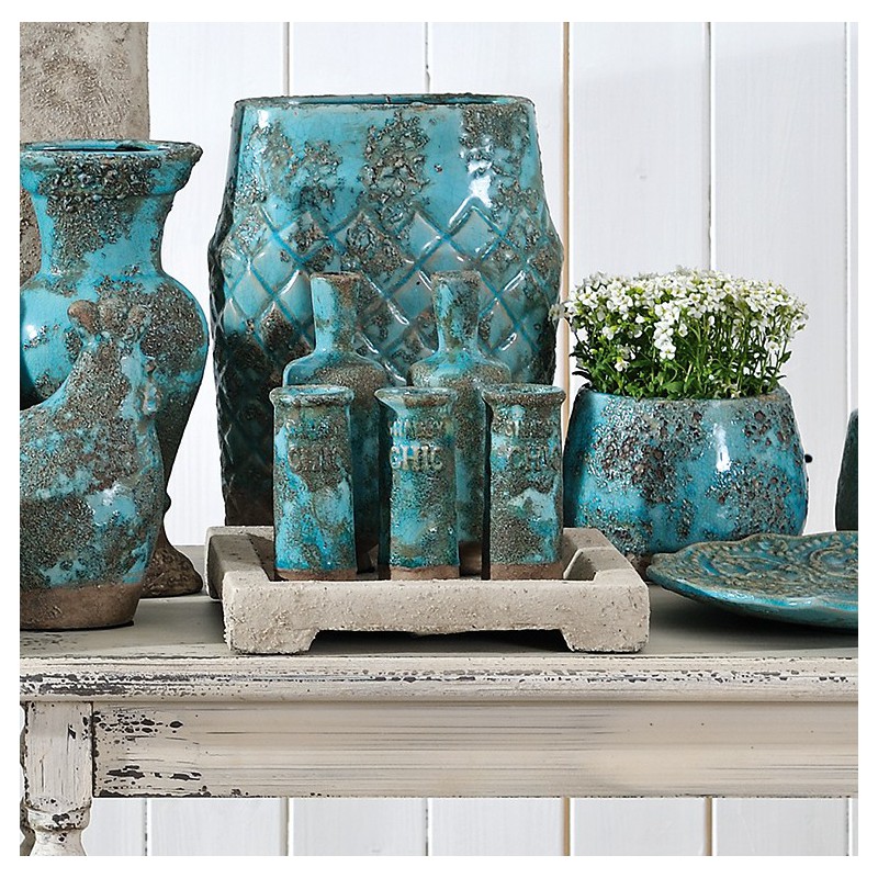 Błękitny wazonik Azzurro Old marki Belldeco z wypukłym napisem SHABBY CHIC. W wazoniku świetnie wyglądać będzie zarówno kilka jak i jeden kwiatek. Do wazonika polecamy także większe wazony oraz stylizowane doniczki Belldeco z serii Azzurro Old.