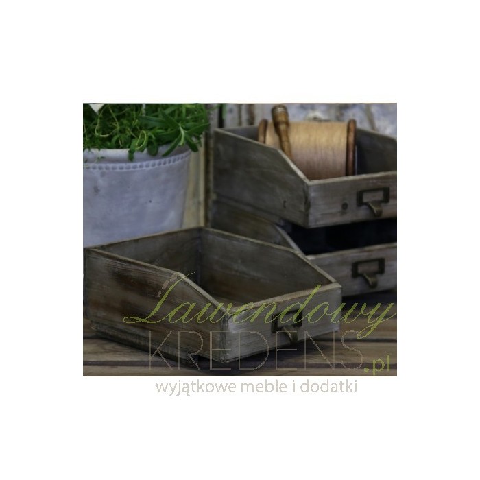 Postarzany na powierzchni, drewniany pojemnik w stylu prowansalskim firmy Chic Antique, który uporządkuje Twoje wnętrze!