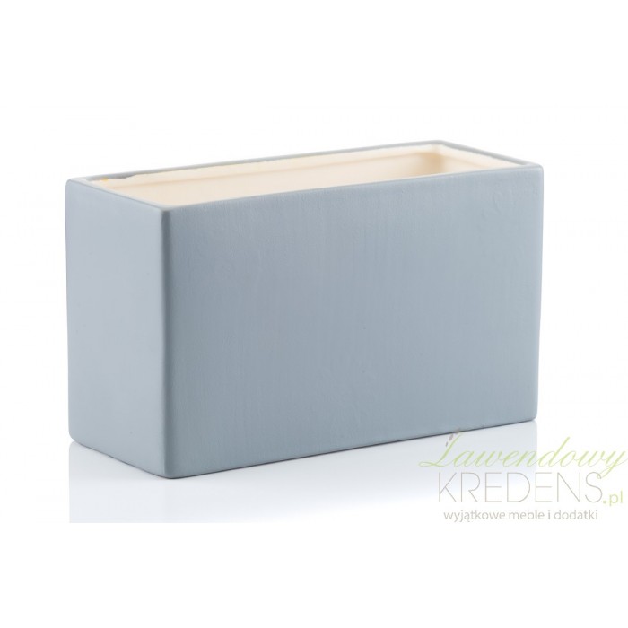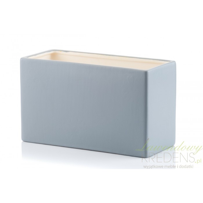 Szara osłonka na doniczkę w pastelowo-szarym kolorze, który w odpowiednim świetle odkrywa przed nami mglistą głębię. Jej podłużna forma sprawia, że osłonka może być przeznaczona dla dwóch mniejszych kwiatków, które połączone, będą wyglądały zjawiskowo. W końcu osłonki na doniczki to nie jest zwykły dodatek wnętrza!
