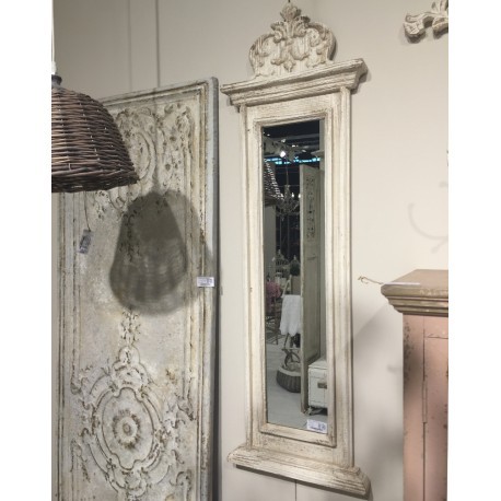 Kremowe lustro Shabby Chic o prostokątnym, podłużnym przekroju, ozdobione przepiękną ramą w stylu prowansalskim!