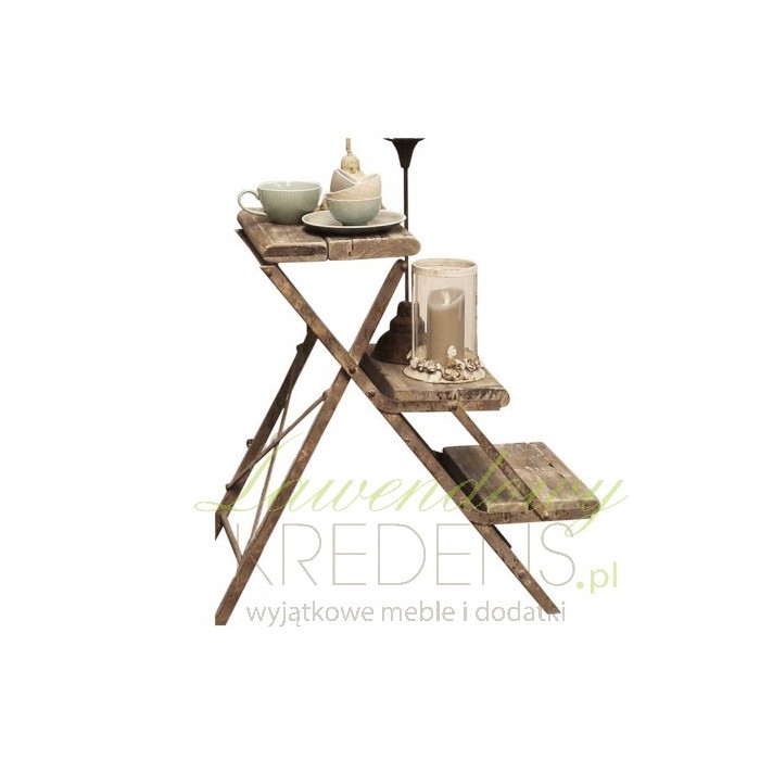 Drewniana drabina z półkami od Chic Antique z trzema szerokimi stopniami z postarzanych desek z widocznymi sękami. Takie rozmieszczenie półek daje dekoracyjny efekt, co z pewnością przełoży się na całe wnętrze w którym stanie. Klimatyczny i jednocześnie niebanalny kształt tego mebla sprawiają, że drabina prowansalska to dodatek idealny!