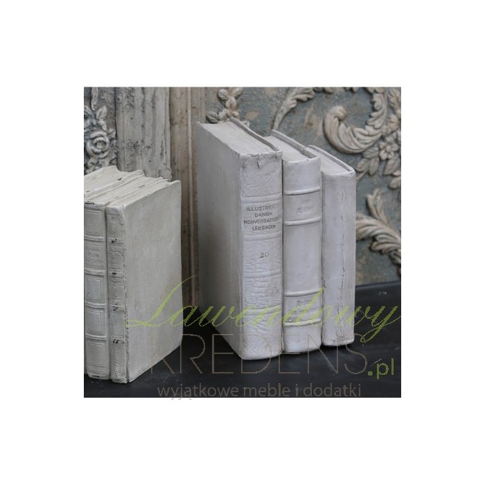 Ozdoba w kształcie starych książek połączona w jedną całość. Na zdjęciu książki znajdują się po prawej stronie.