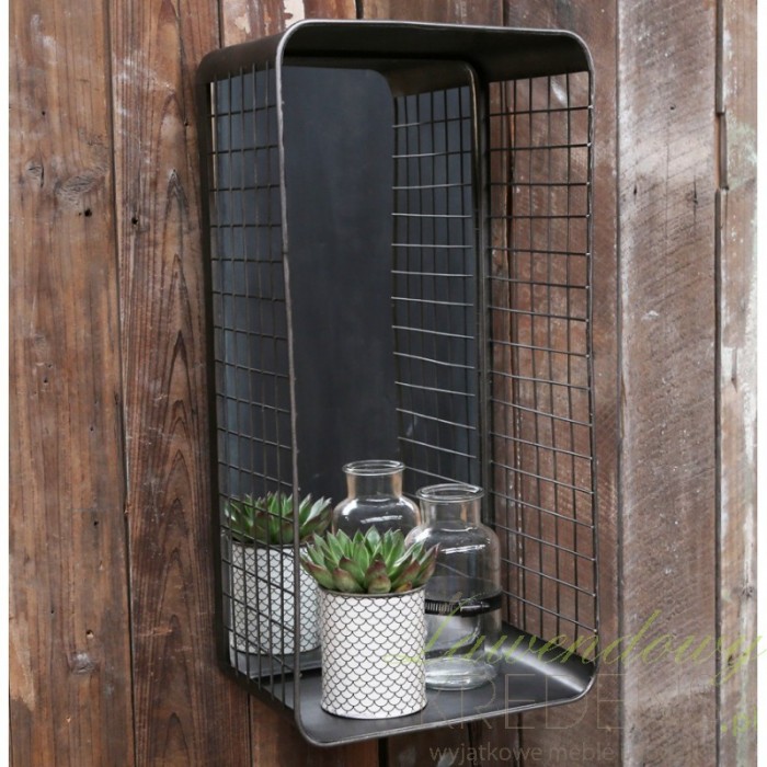 Meble w stylu industrialnym stanowią niesamowite, ciekawe rozwiązania w ówczesnym wystroju wnętrz. Półka factory firmy Chic Antique przypomina kosz na podręczne rzeczy. Wykonana została z metalu i ma duże lustro. Metalowa półka idealnie nadaje się do łazienki lub przedpokoju.