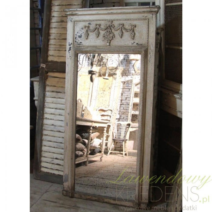 Przepiękne lustro w stylu prowansalskim firmy Chic Antique, z dużym ozdobnym ornamentem nad nim!