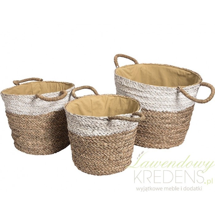 Bardzo solidnie wykonany kosz EcoEtno z trawy morskiej, od środka wyłożony jasnym materiałem. Do 2/3 wysokości, patrząć od dołu kosz Belldeco ma kolor naturalnej trawy morskiej, powyżej tej wysokości króluje kolor biały. Rączki wykonane z drobniejszego splotu z pewnością ułatwią Ci przenoszenie kosza!