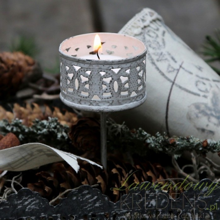 Dekoracyjny świecznik na patyku firmy Chic Antique idealny do wystroju stroika świątecznego!
