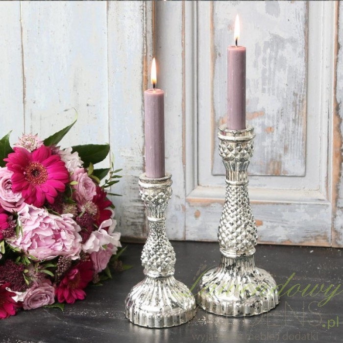 Mniejszy ze świeczników, widoczny na zdjęciu po lewej stronie.