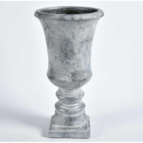 Puchar Belldeco ma duży kielich i stoi na solidnej kwadratowej nóżce. Puchar na kwiaty firmy Belldeco ma mocno przecieraną farbę z białą poświatą. Może być świetną dekoracją pokoju czy posłużyć jako miejsce na kwiaty.