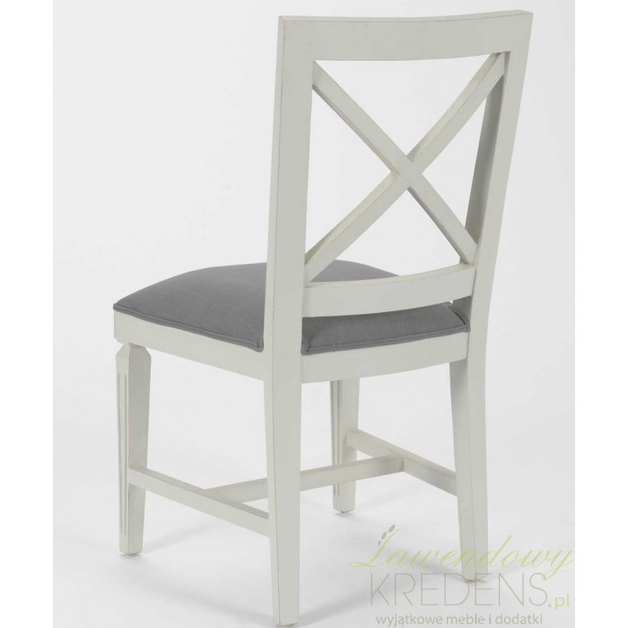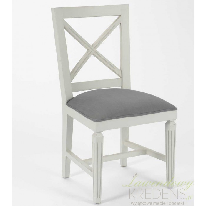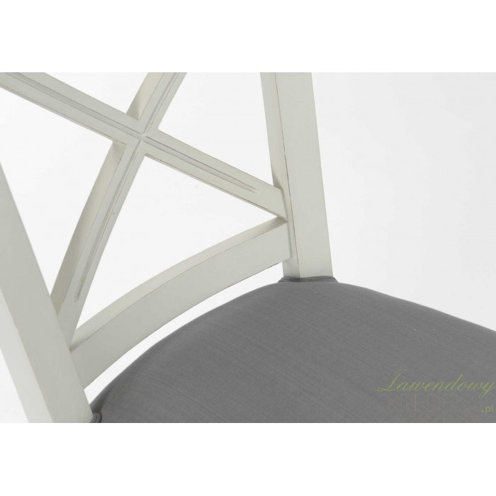 Śliczne, białe krzesło prowansalskie marki Sendi z szarym siedziskiem i nietypową ramą!