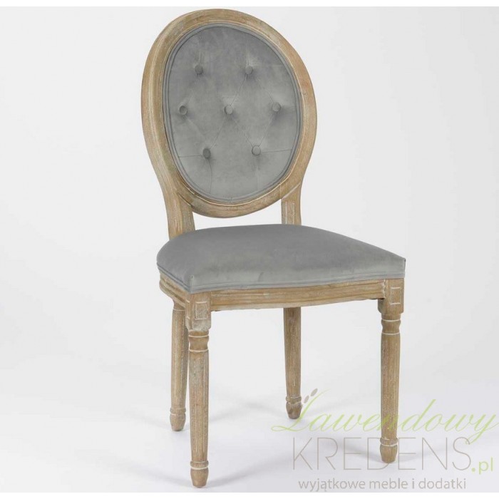 Meble prowansalskie to niecodzienne i pełne pomysłów inspiracje, które zauroczą Cię na każdym kroku. Wśród nich są krzesła tapicerowane, będące w dzisiejszych czasach trudno dostępnym i unikatowym towarem. Jednym z nich jest szare krzesło prowansalskie z kolekcji Medalion. Wykonane jest z przetartego drewna i szarej, welurowej tapicerki. Zapraszamy do zakupu!