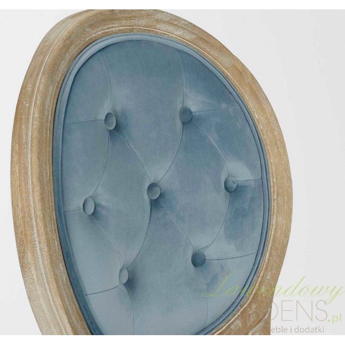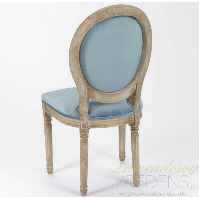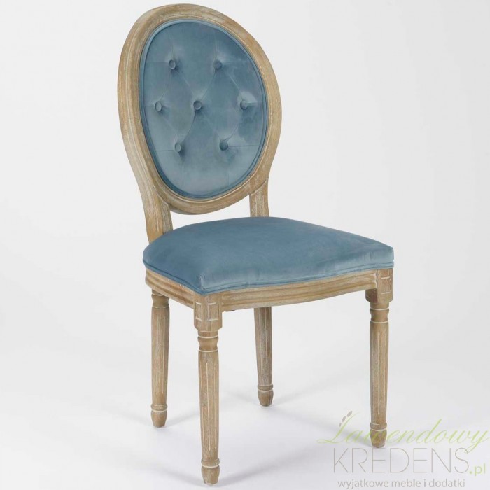 Niezwykłe krzesło prowansalskie z kolekcji Medalion wyróżnia piękny niebieski kolor. Stworzone zostało z wysokiej jakości drewna i olśniewającej tapicerki wykonanej z weluru. Krzesła tapicerowane to godne uwagi, wysokiej klasy produkty, które zachwycą nas swoim wyglądem. Meble prowansalskie to świetny francuski styl, wyróżniający się swoim charakterem i wyjątkowością na tle innych mebli.