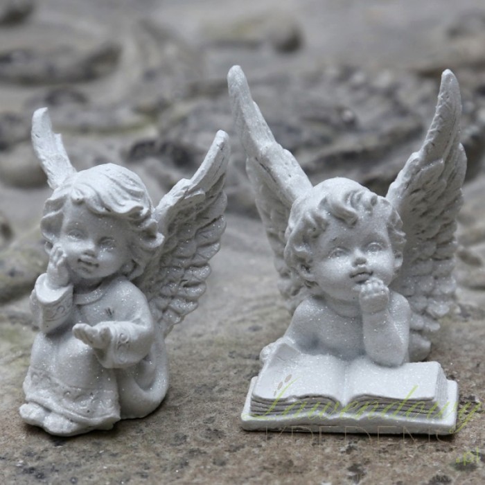 Figurki aniołów prezentują się naprawdę uroczo, ponieważ na twarzy obu z nich rozkwita rozkoszny uśmiech. Aniołek w pozycji siedzącej wygląda jakby próbował chwycić spadające płatki śniegu, a drugi w zamyśleniu czyta książkę. Porcelanowe aniołki z brokatem mają jasny kolor. Nie zastanawiaj się, którego wybrać, ponieważ u nas otrzymasz oba w jednym zestawie!