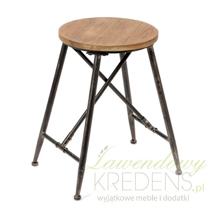 Stołek skandynawski wykonany jest z metalowych czarnych nóżek z przetarciami i okrągłego, drewnianego siedziska. Nogi połączone są ze sobą dodatkowymi, skrzyżowanymi i metalowyminzłączeniami. Stołek industrialny przypomina swym wyglądem stołek barowy, na którym można mile spędzić czas. Meble loft doskonale sprawdzą się w modnych, minimalistycznych pomieszczeniach, gdzie króluje nowoczesność ale też i klasyka.