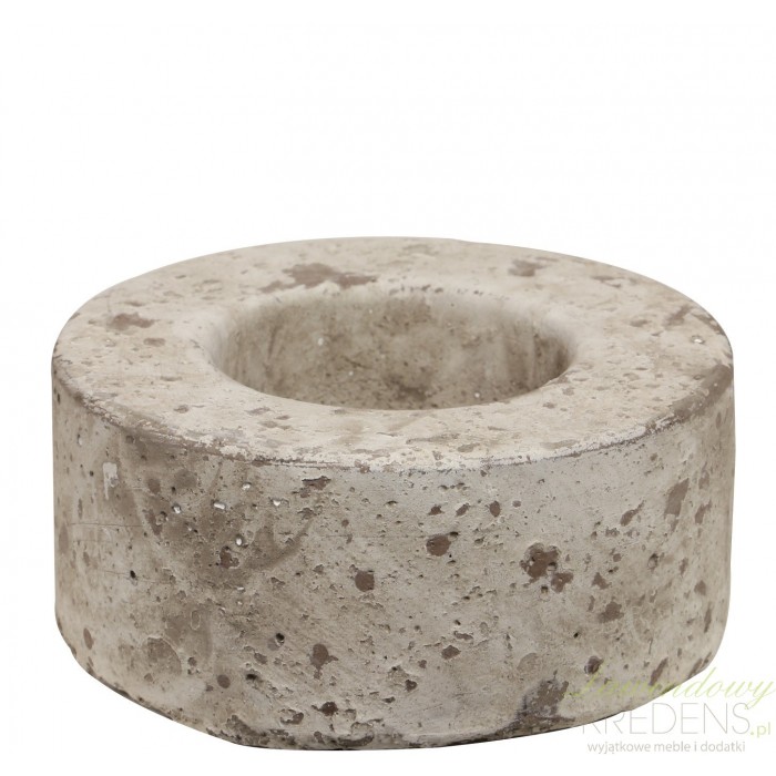 Świecznik z cementu na pozór wygląda jakby wykonany został z kamienia, dokładnie wyrzeźbiony i dopasowany idealnie pod rozmiar pojedynczej świeczki typu tealight.