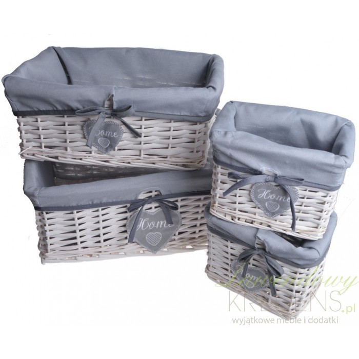 Wyścielony szarym, bawełnianym materiałem, wiklinowy kosz na Twoje drobiazgi, który zauroczy stylowymi dodatkami!