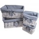 Białe kosze wiklinowe z szarym materiałem to idealne dodatki, które powinny zagościć w każdej łazience.