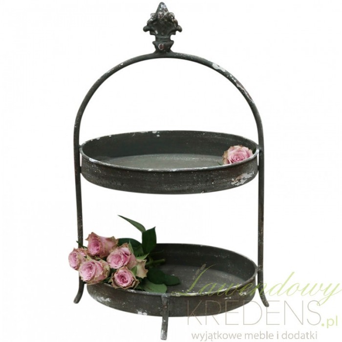 Dwupoziomowa, metalowa etażerka o owalnych platformach użytkowych, które łączy ozdobna obręcz! Perfekcyjny dodatek!