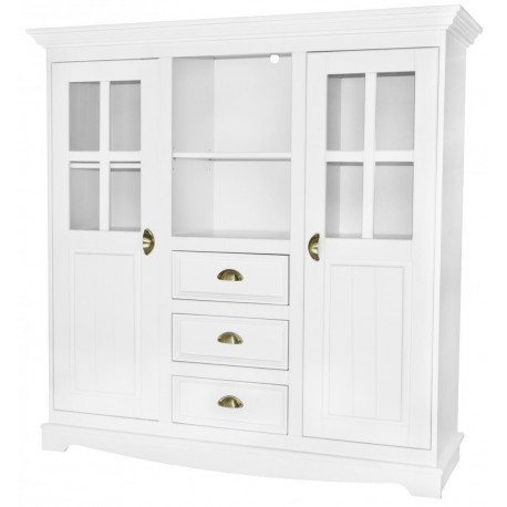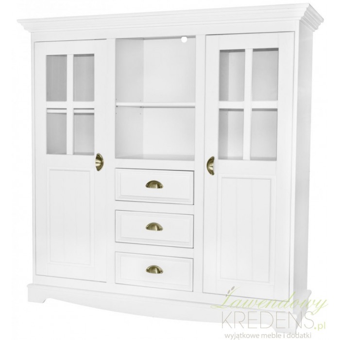 Wysoka jak na mebel tego typu, biała komoda w stylu prowansalskim z przeszklonymi drzwiczkami bocznymi!