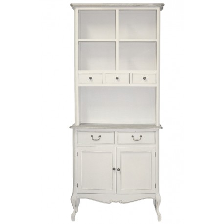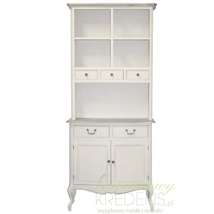 Wspaniały kredens prowansalski to przykłąd na to, że beżowe meble świetnie wyglądają w każdej przestrzeni, niezaleznie od koloru ścian. Praktyczny podział na część dolną, zamkniętą drzwiczkami i część górną, z symetrycznymi półkami i mniejszymi szufladkami. A wszystko podkreślone bielonymi blatami!