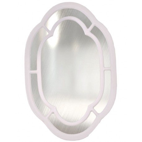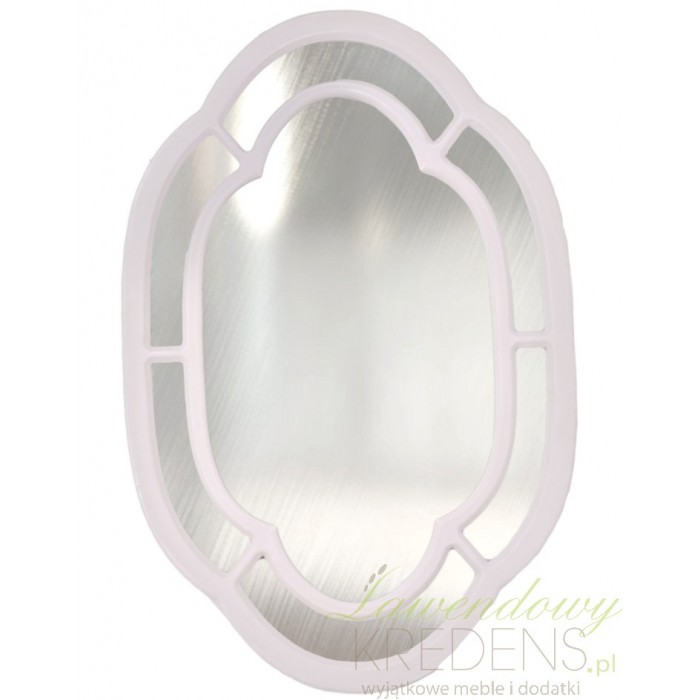 Niecodziennego kształtu lustro w stylu prowansalskim z dodatkowym obramowaniem z zaokrąglonymi narożami.