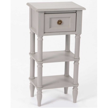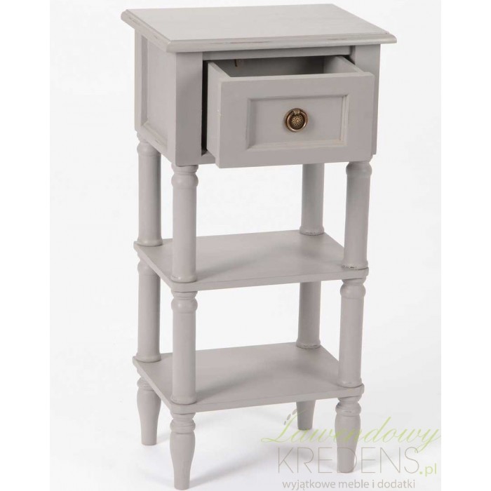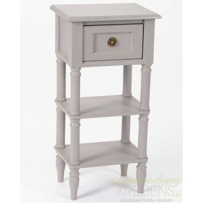 Szary stolik w półkami to uniwersalne rozwiązanie, które znajdzie zastosowanie zarówno w salonie jako stolik na kwiaty, w sypialni jako stolik nocny czy w przedpokoju jako stolik na klucze i inne drobiazgi. Umieszczona pod blatem szufladka i dwie półki sprawią, że miejsca będzie pod dostatkiem!
