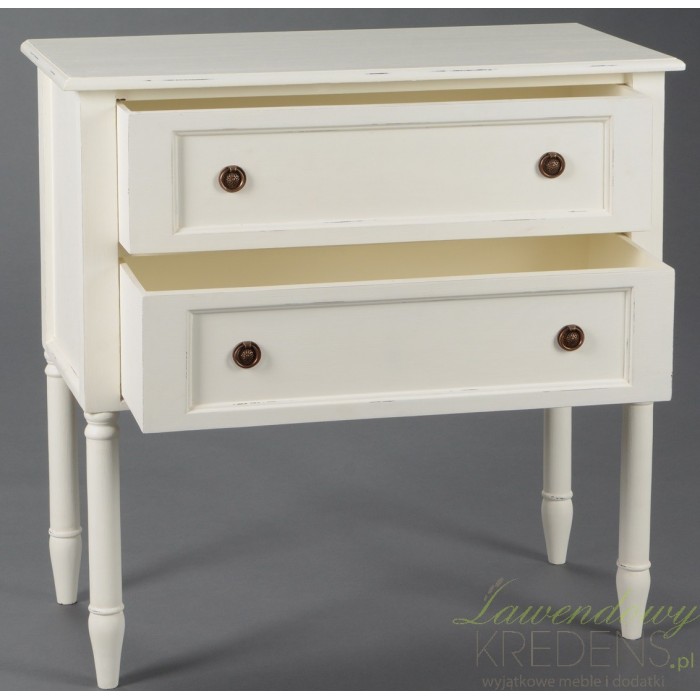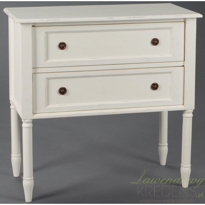 Skromna, drewniana komoda prowansalska z kolekcji Bris z dwoma szufladami!