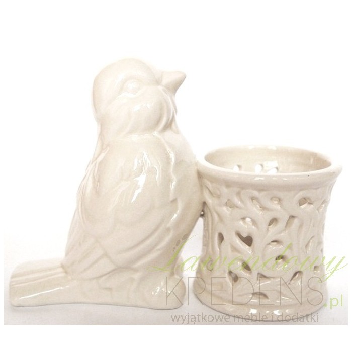 Świecznik Biały Ptak to cudownie wyglądający, biały świecznik w kształcie małego ptaszka, który brzuszkiem opiera się o piękny koszyk, zdobiony dekoracją utworzoną z falistej, miękkiej linii. Świecznik wygląda wyjątkowo – stanowi połączenie funkcjonalności z piękną ozdobą.