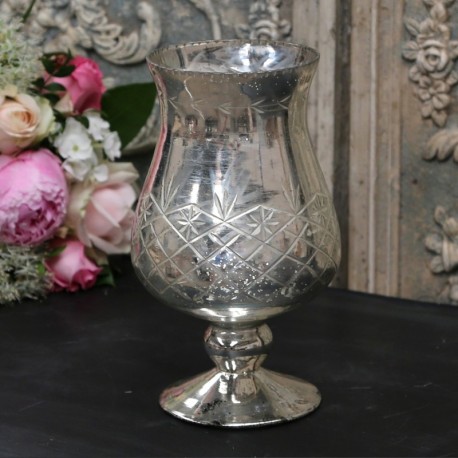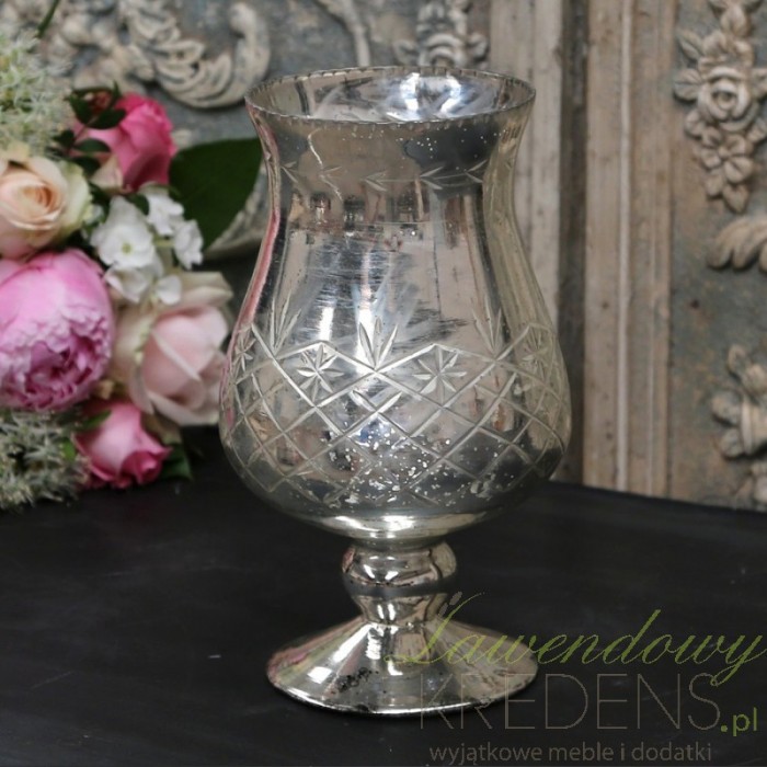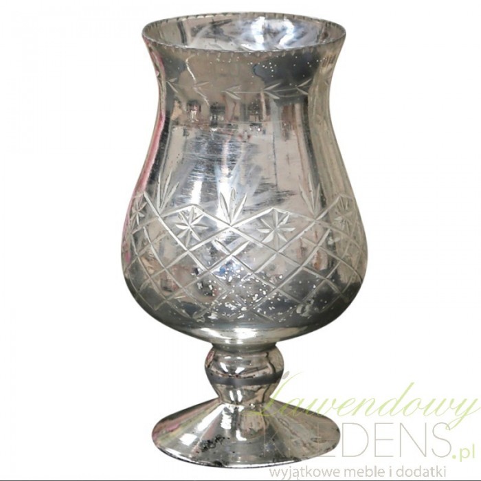 Szklany puchar Chic Antique ma srebrny, delikatnie połyskujący kolor. Zdobią go cienkie rysy układające się w interesujący wzór. Wykonany w całości ze szkła sprawdzi się w roli dekoracyjnego kielicha na stół, również jako lampion na tealight. Wykorzystując dekoracje od Chic Antique takie jak srebrny lampion zyskasz podziw w oczach gości.
