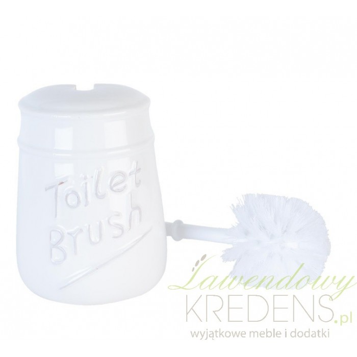 Elegancka, biała szczotka do toalety firmy Clayre & Eef z dużym napisem Toilet Brush!