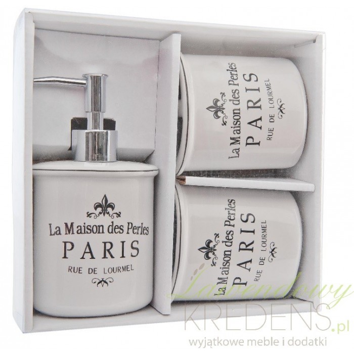 Zestaw łazienkowy z kolekcji Paris firmy Clayre & Eef składający się z dozownika do mydła i dwóch kubeczków!