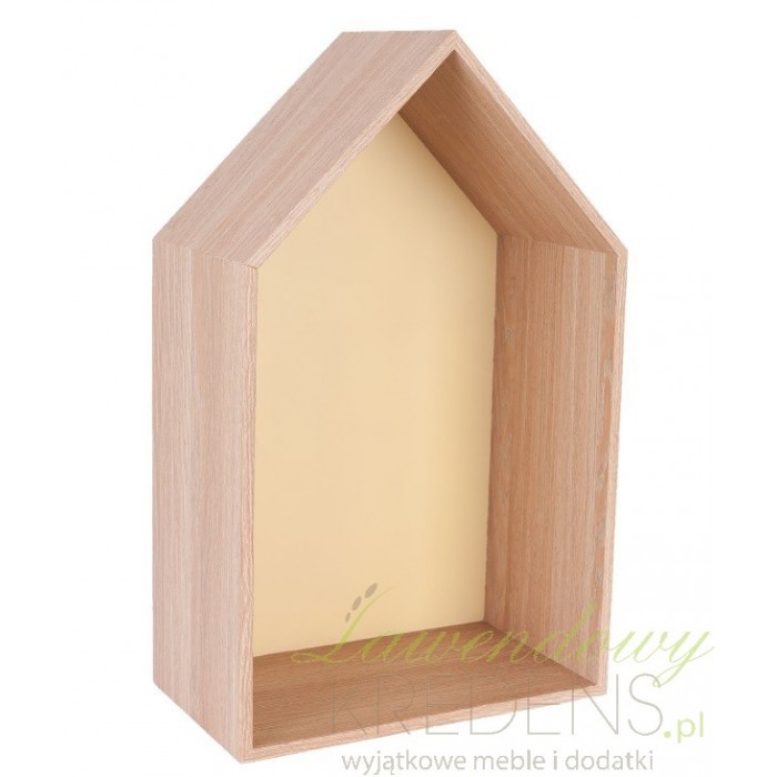 Niecodzienna półka domek w kolorze żółtym będzie uroczo wyglądała w dziecięcym pokoju. Wysoka półka ścienna wykonana jest z solidnej płyty MDF, na której zmieszczą się nawet cięższe rzeczy. Uchwyt z tyłu szafki pomaga stabilnie zamocować ją do ściany. Półka w stylu skandynawskim to oryginalny pomysł jak z czegoś prostego zrobić coś niesamowitego!
