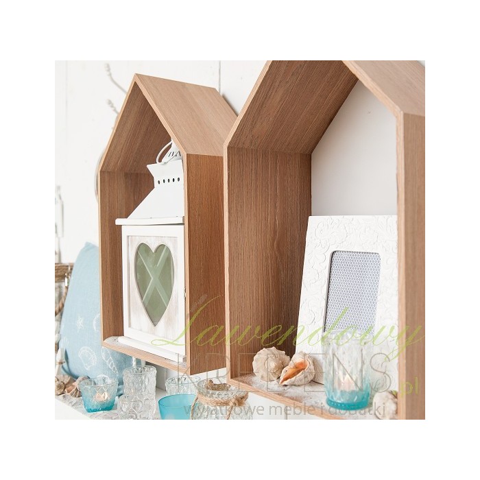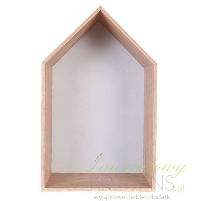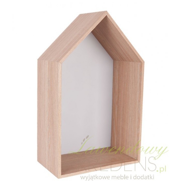 Fenomenalna półka w stylu skandynawskim to zarówno praktyczne, jak i ozdobne rozwiązanie dla twojego domu. Półka domek będzie genialnie prezentować się na przykład w przedpokoju, jako miejsce na kluczyki i ważne dokumenty. Półka ścienna z zewnątrz obudowana jest płytą MDF w kolorze jasnego drewna, a w środku jest biała.