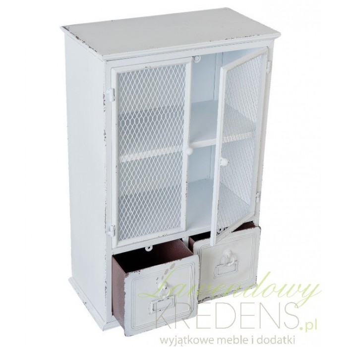 Meble metalowe to obecnie nowy trend w projektowaniu wnętrz. Metalowa szafka ścienna w kolorze antycznej, przecieranej bieli stwarza wrażenie mebla z poprzedniej epoki. Posiada na dole dwie duże szufladki na bieliznę czy jakieś drobiazgi oraz zamykaną szafkę z drzwiczkami przypominającymi siatkę. Szafki ścienne to praktyczne i funkcjonalne rozwiązania dla domu, w których zmieści się wiele potrzebnych rzeczy.