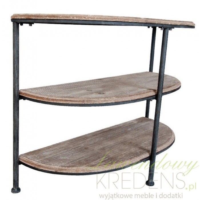 Skromna konsola loft wykonana jest z metalu i trzech brązowych, drewnianych i przecieranych półek. Jest świetnym miejscem na umieszczenie na niej telewizora czy też innych multimediów. Metalowe meble to obecnie bardzo popularne i modne zestawienie z różnego rodzaju wnętrzami.