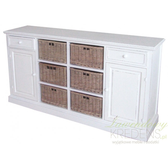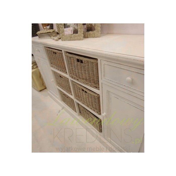 Duża, biała komoda prowansalska z kolekcji Riviera z wiklinowymi koszami!
