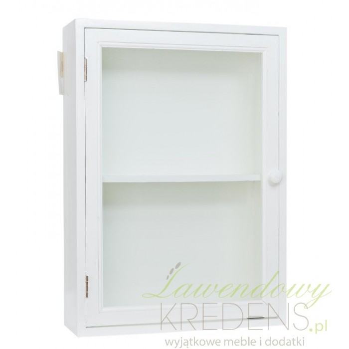 Szafka wisząca w stylu prowansalskim wykonana jest z drewna w kolorze białym. Szafka ścienna firmy Clayre & Eef posiada dwie półeczki na naczynia i zamykane drzwiczki z dużą, przezroczystą szybą. Szafka jest prosta, bez żadnych dekoracji, dzięki czemu wspaniale pasuje do każdego wnętrza. Meble w stylu prowansalskim to fantastyczne i ponadprzeciętne meble, które zapewniają oryginalny styl i niecodzienny wygląd.