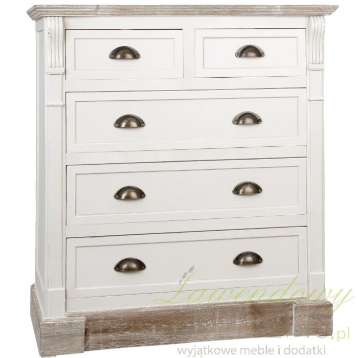 Meble prowansalskie to doskonały wybór. Wśród nich można wyróżnić komody w stylu prowansalskim, które zachwycają swoją różnorodnością i niepowtarzalnością. Komoda prowansalska firmy Clayre & Eef wykonana jest z solidnego drewna w kolorze jasnego beżu z przetarciami oraz brązową podstawą i blatem. Ma trzy duże szuflady na ubrania i dwie mniejsze na przykład na biżuterię. Komoda posiada duże rewelacyjne uchwyty, a piękne zdobienia zapewniają jej unikalny wygląd.