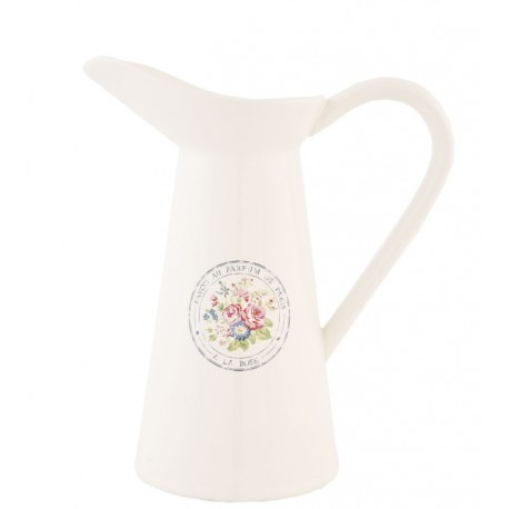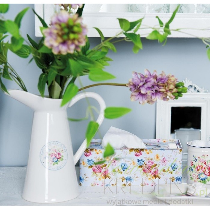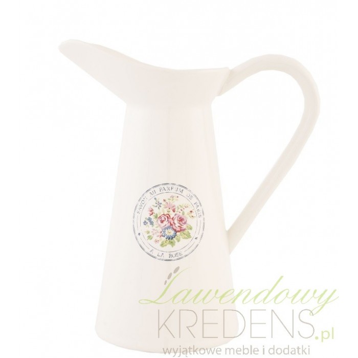 Dzbanek ozdobny w kolorze białym tworzy piękną, kształtną formę o delikatnym zdobieniu. Na ściance dzbanka znajduje się kolorowy stempel przedstawiający bukiet kwiatów. Przedmiot wprost idelanie udekoruje wnętrza łazienki, może posłużyć także jako oryginalny wazon. Popatrz na inne dodatki w stylu prowansalskim!